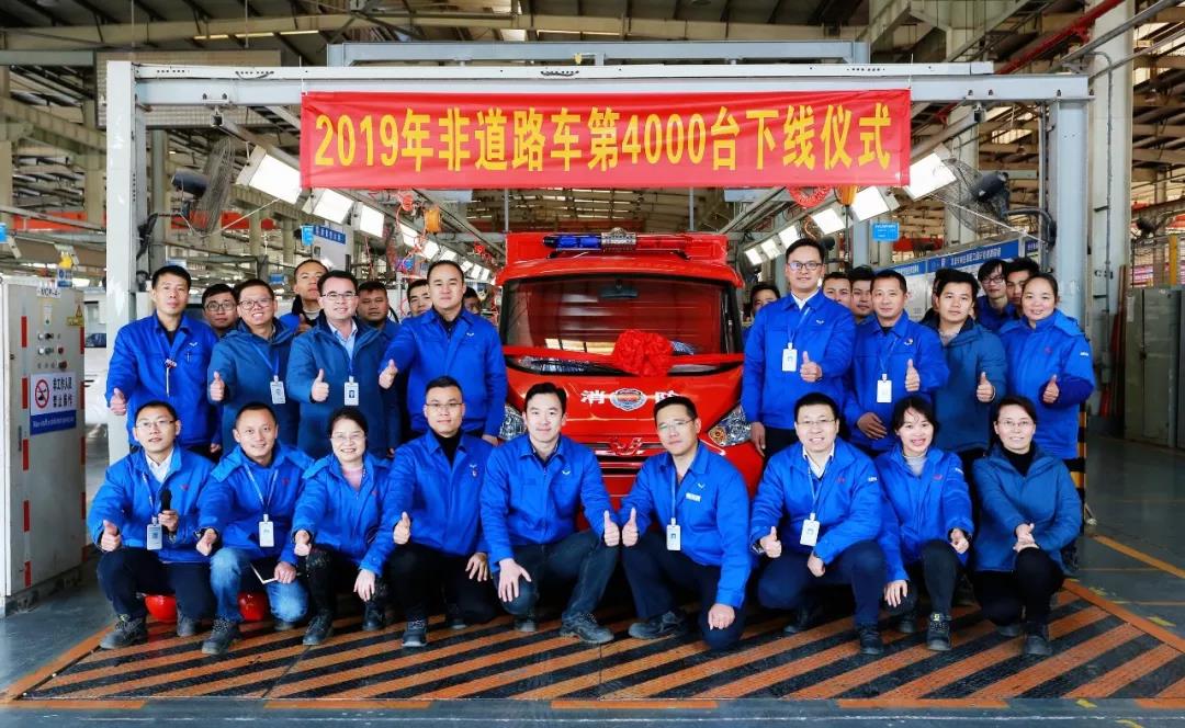 12月27日,在专用车厂总装车间主装配线举行2019年非道路车第4000台下线仪式,产、供、销团队共同见证这个激动人心的时刻。