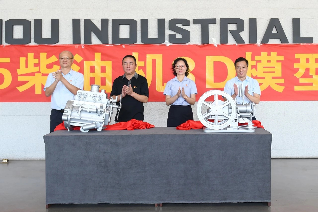 随着大红绸布被揭开,两台3D模型展现在人们眼前,这是五菱柳机公司向市工业博物馆捐赠的两件展品:木炭机、485柴油机3D模型。