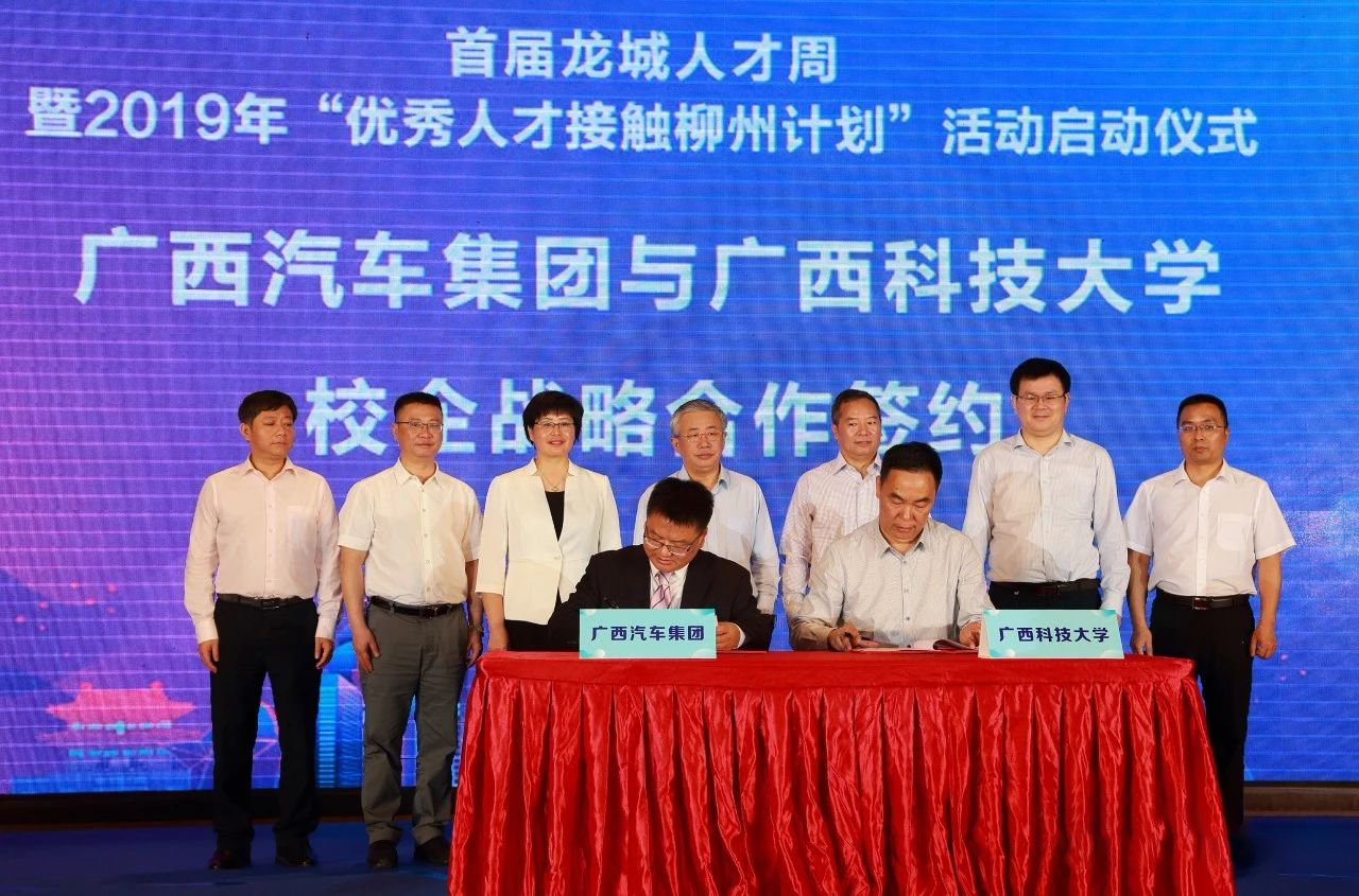 4月10日,首届龙城人才周暨2019年“优秀人才接触柳州”活动在柳州举行启动仪式。在启动会上日本av大全 获得了博士后科研工作站授牌、与武汉理工大学签订汽车人才培训培养合作框架协议以及与广西科技大学签订战略合作框架协议。