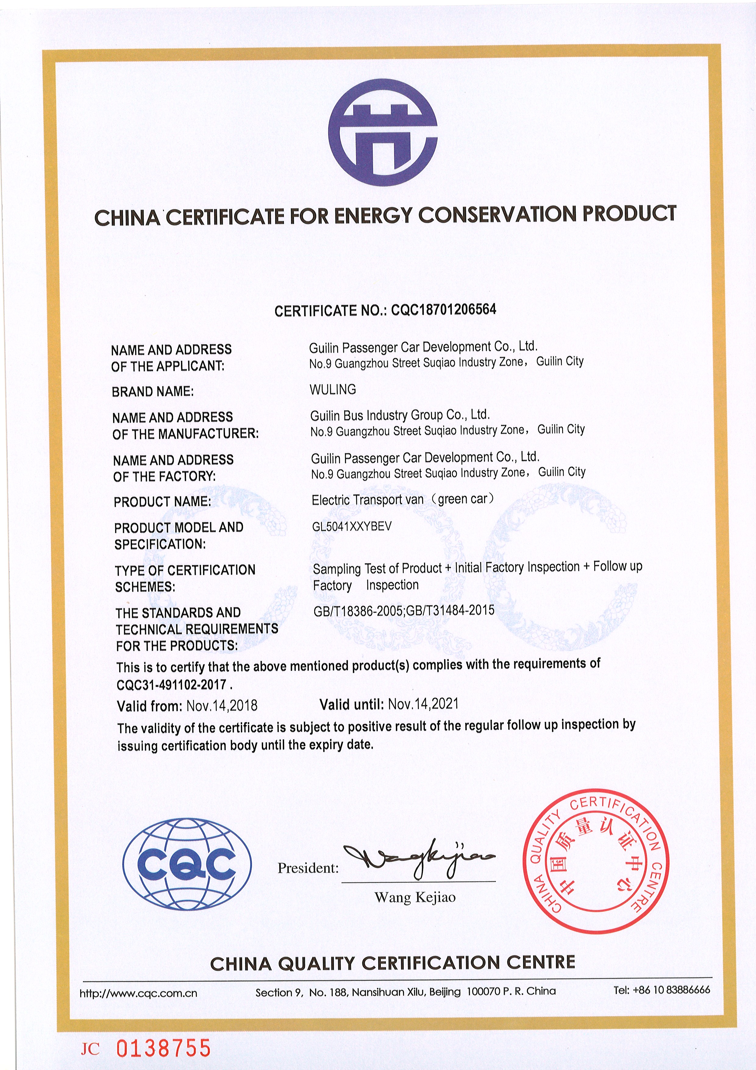 节能产品认证是指依据国家相关的节能产品认证标准和技术要求,按照国际上通行的产品质量认证规定与程序,经中国节能产品认证机构确认并通过颁布认证证书和节能标志,证明某一产品符合相应标准和节能要求的活动。在节能认证时,产品的设计、采购、生产、检验全部达到国家级产品品质认证的要求,满足CQC(中国质量认证中心)产品认证指标。值得一提的是,国家质量检测中心权威认证,公司新能源城市客车不一般!空载质量仅3.5吨,比同类别车身轻30%,同样续驶里程,节省20%电池成本。