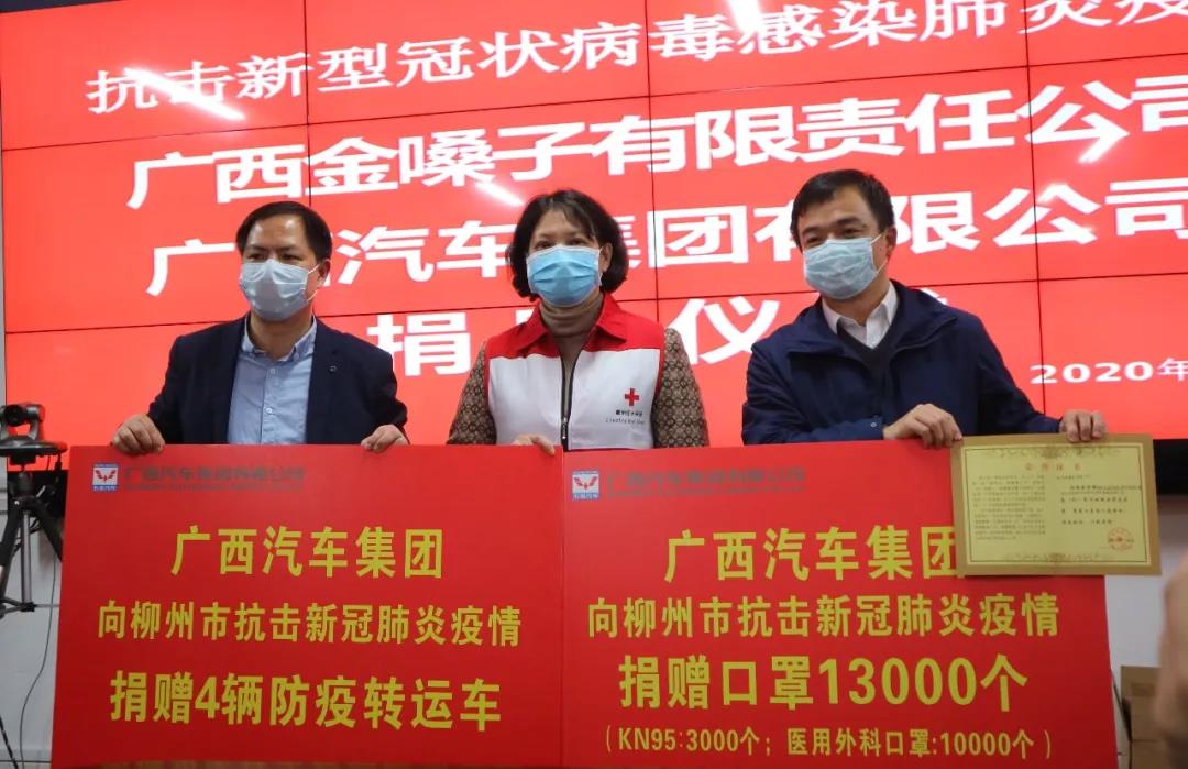 2月13日下午,日本av大全 启动第二批捐赠行动,定向捐赠给柳州市抗击新型冠状病毒感染肺炎疫情指挥部口罩13000个(KN95口罩3000个,医用外科口罩10000个),统一配送一线医务工作人员。同时联合旗下柳州五菱汽车工业有限公司,将4辆五菱防疫转运车定向捐给市人民医院、市柳铁中心医院、市工人医院、自治区龙潭医院(各1辆),共同助力柳州市的疫情防控。